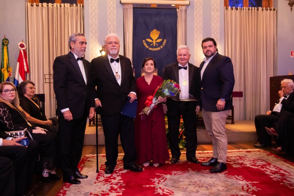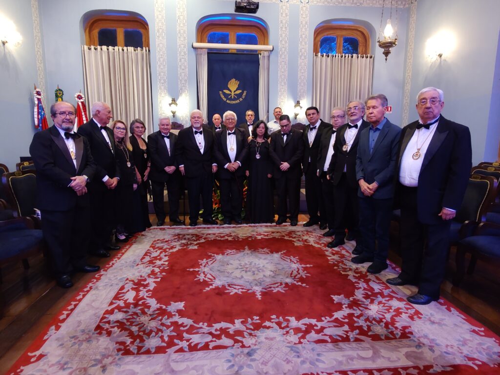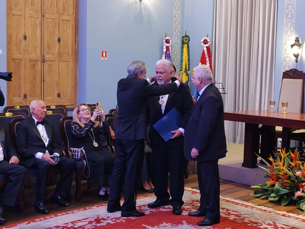 Imortal recebendo o Colar Acadêmico, simbolizando o ingresso na instituição literária.