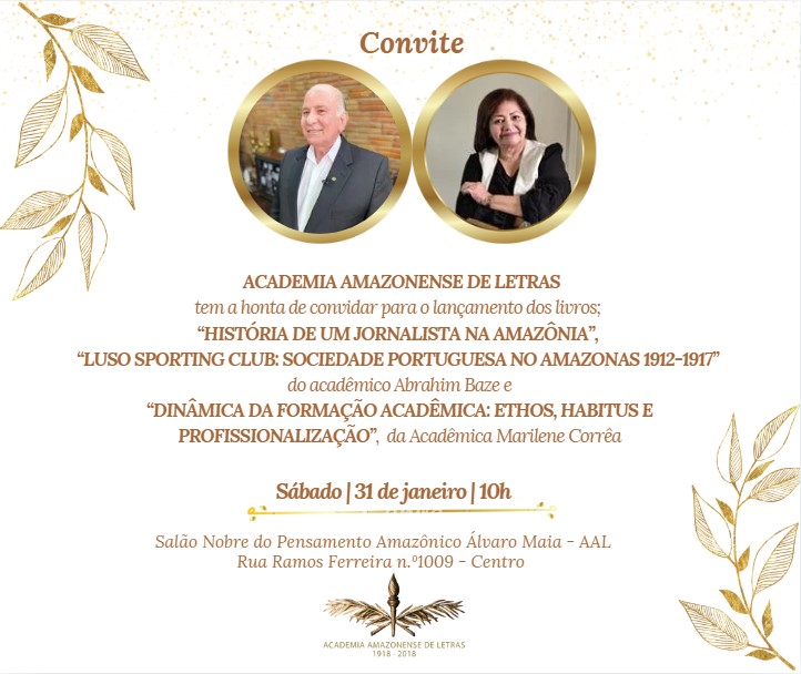 Além da Acadêmica Marilene Corrêa, o presidente da Academia Amazonense de Letras, Abrahim Baze também lançará duas obras literárias intituladas; “História de um Jornalista na Amazônia”, “Luso Sporting Club: Sociedade Portuguesa no Amazonas 1912-1917”.