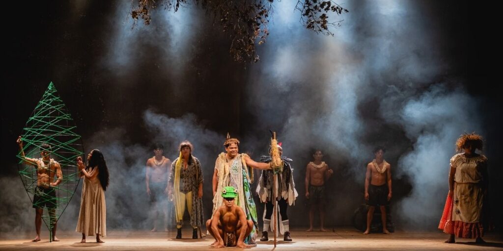 Em cena, o kumu e sua reza e ensino; o kahapí, bebida sagrada à base de ayahuasca, as histórias e a força dessa bebida para os mundos natural e sobrenatural; o rito de passagem… tudo com base na oralidade, inclusive o conhecimento do plantio, caça, plantas medicinais, grafismos corporais e o calendário ecológico