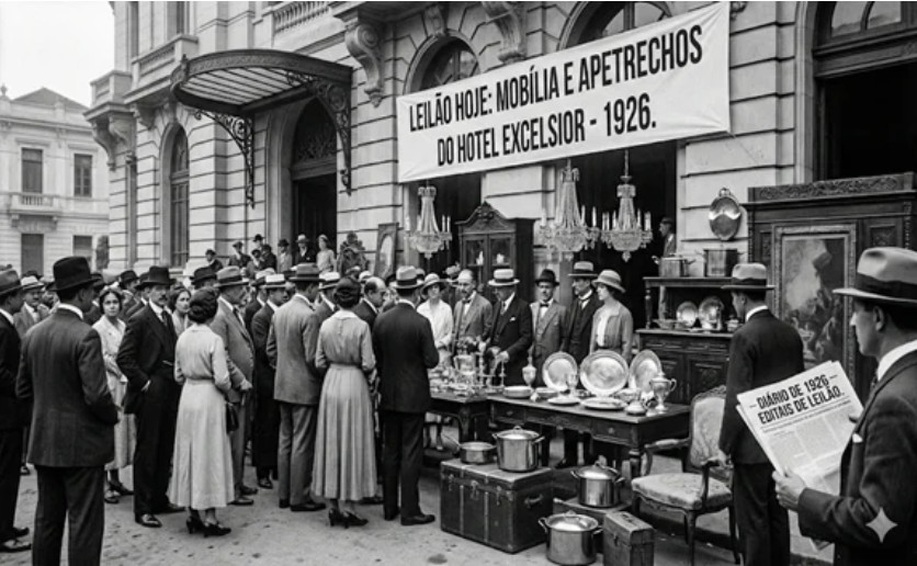 Para exemplificar esse fato, tomo o ano de 1926, precisamente cem anos passados, no qual encontrei inúmeros editais dessa natureza, os quais permitem que se perceba o nível socioeconômico dos proprietários e o “status” das empresas, como as de hotelaria semelhantes ao caso do Hotel Excelsior, que vendeu sua excepcional mobília e apetrechos de uso pessoal e de cozinha.